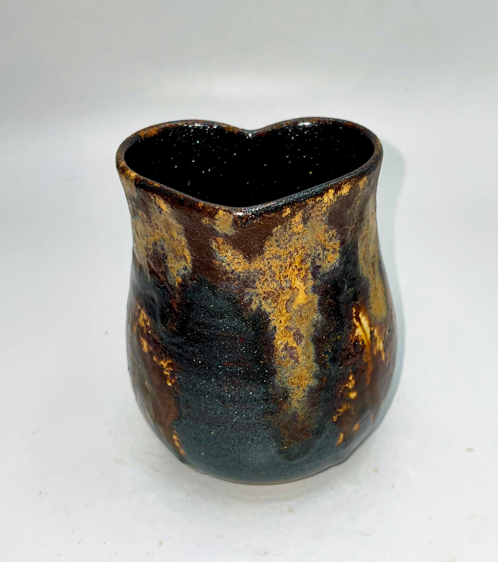 A cute sparkly brown tea mug in the shape of a heart. Can be used as a cup, a pitcher or even as a little vase… so versatile!