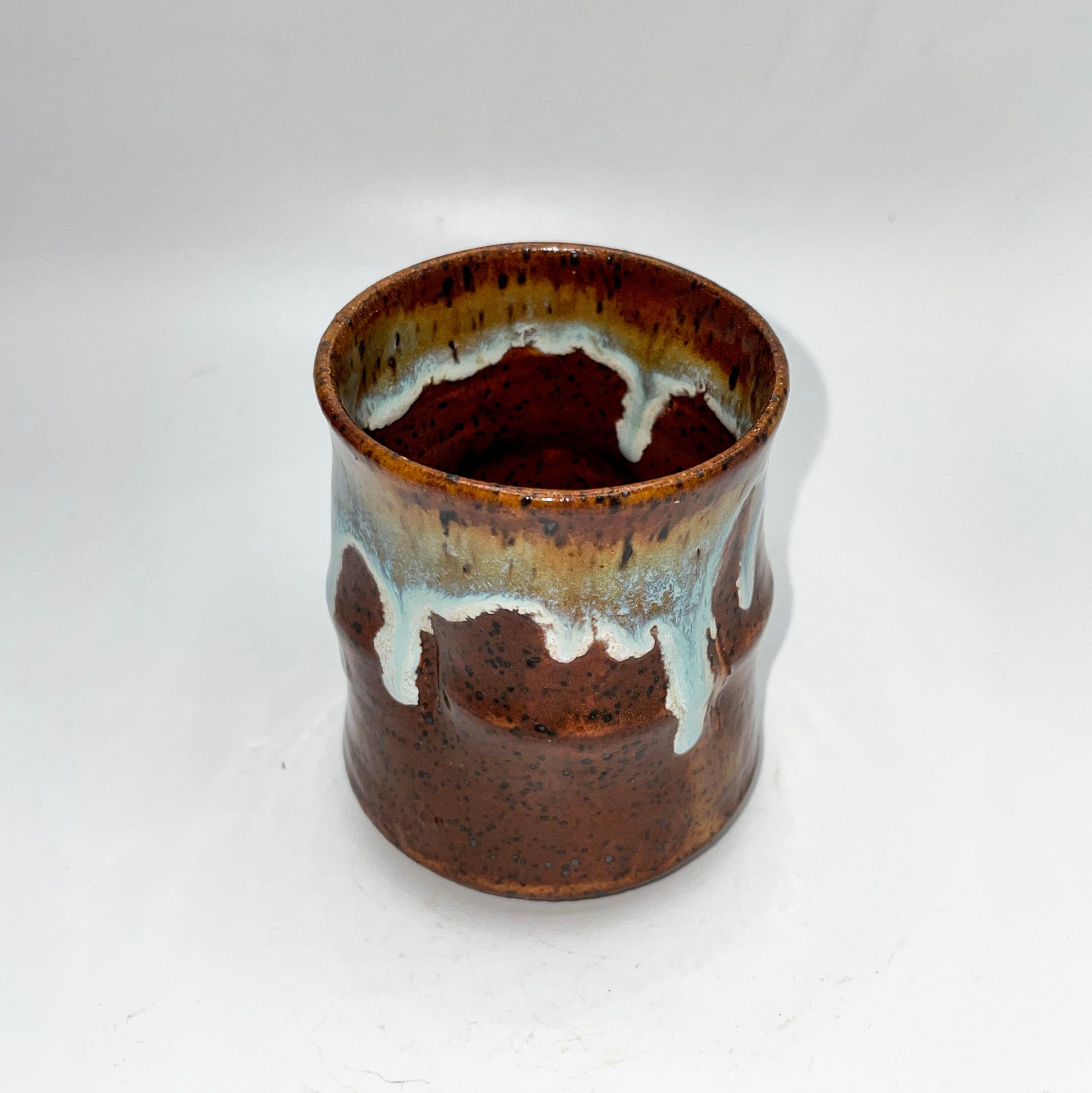 A southwestern pallet of browns and blues in this beautiful handcrafted cup with indents to perfectly fit your grasp.